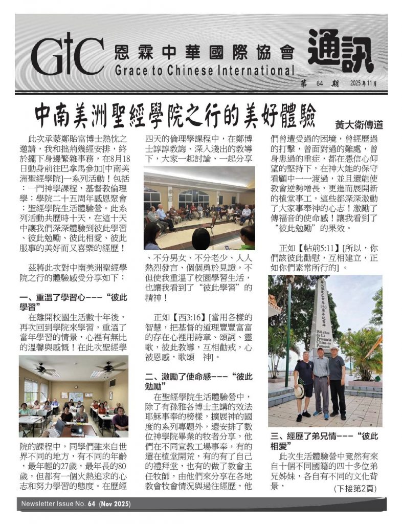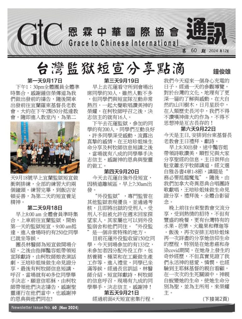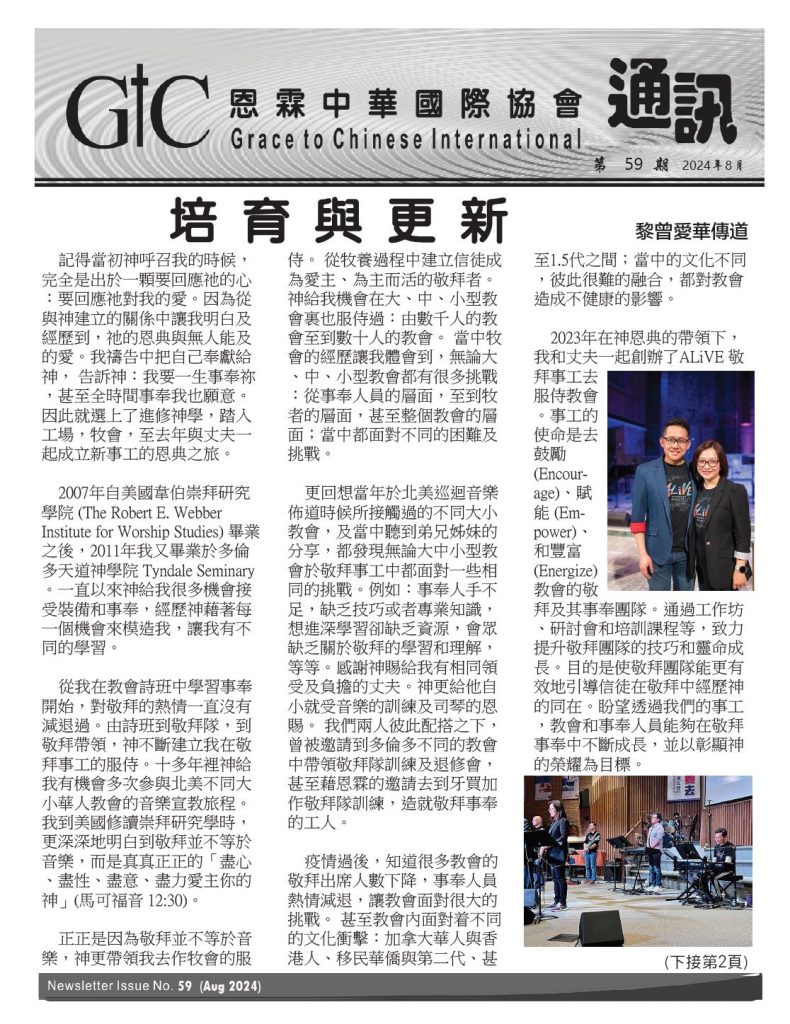 誠信誠心,服務華人,效法基督,榮耀上帝。